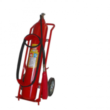 O extintor de gás carbônico vem com um cilindro com capacidade de 25kg e com rodas de borracha acoplado ao eixo da ferragem, o volume hidráulico mí